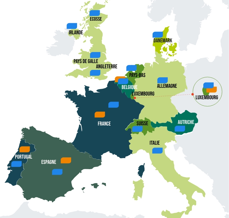Pour notre activité de Maintenance, Facility Management et Travaux, nos filiales européennes nous permettent d’intervenir en France, Monaco, Belgique, Luxembourg, ainsi qu’en Espagne et Portugal, tout en assurant un niveau de qualité homogène sur l’ensemble de ces territoires.